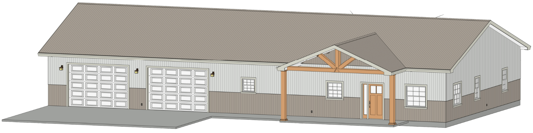 Welcome to the Boldbrook Home barndominium floor plan, a spacious retreat blending rustic charm with modern convenience.