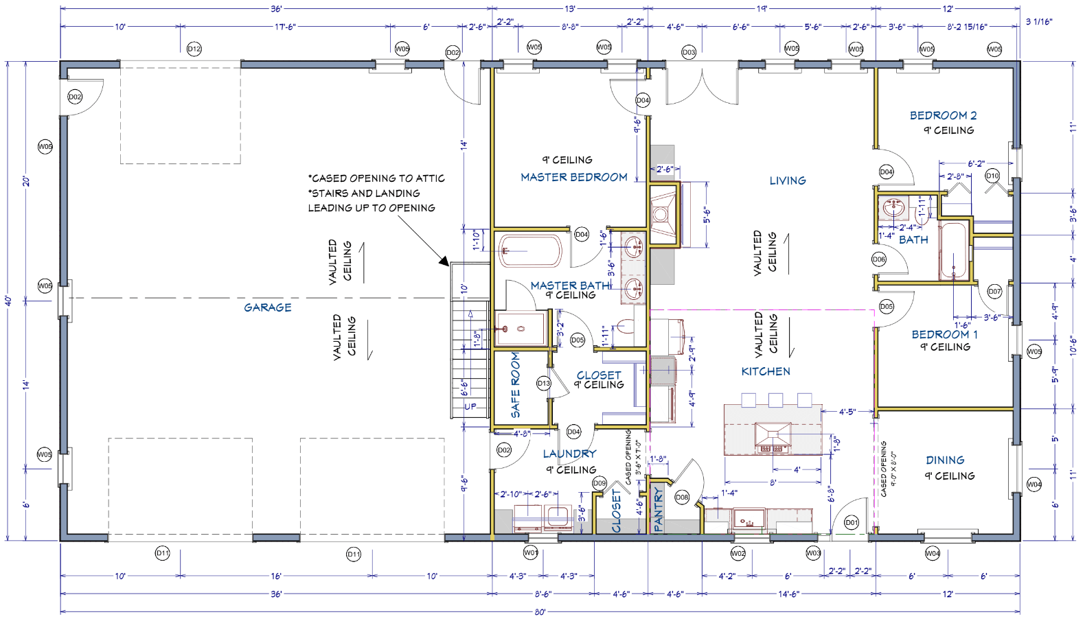 With dimensions spanning 80' x 40', this layout boasts a generous living area of 1,760 sq. ft., accommodating 3 bedrooms and 2 bathrooms.