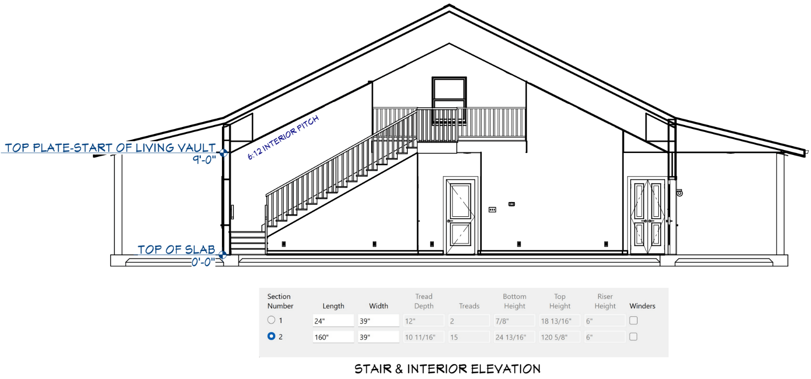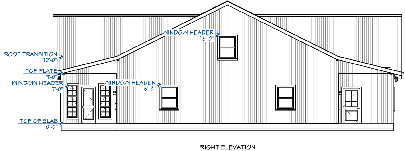 Spanning 60' x 40', this two-story barndominium offers 2,600 sq. ft. of living space.