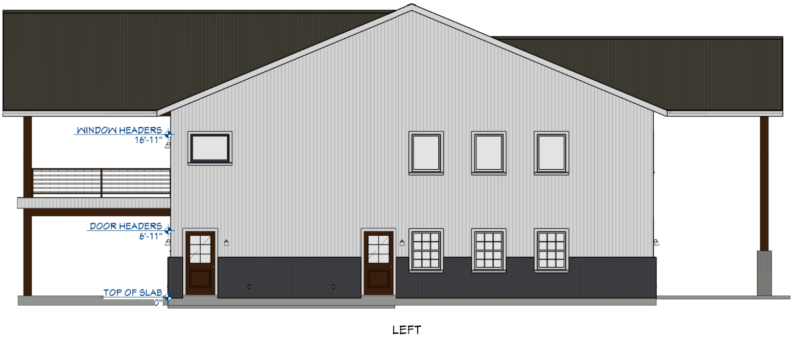 This spacious 5,739 sq. ft. Barndominium boasts a thoughtful layout across two stories.