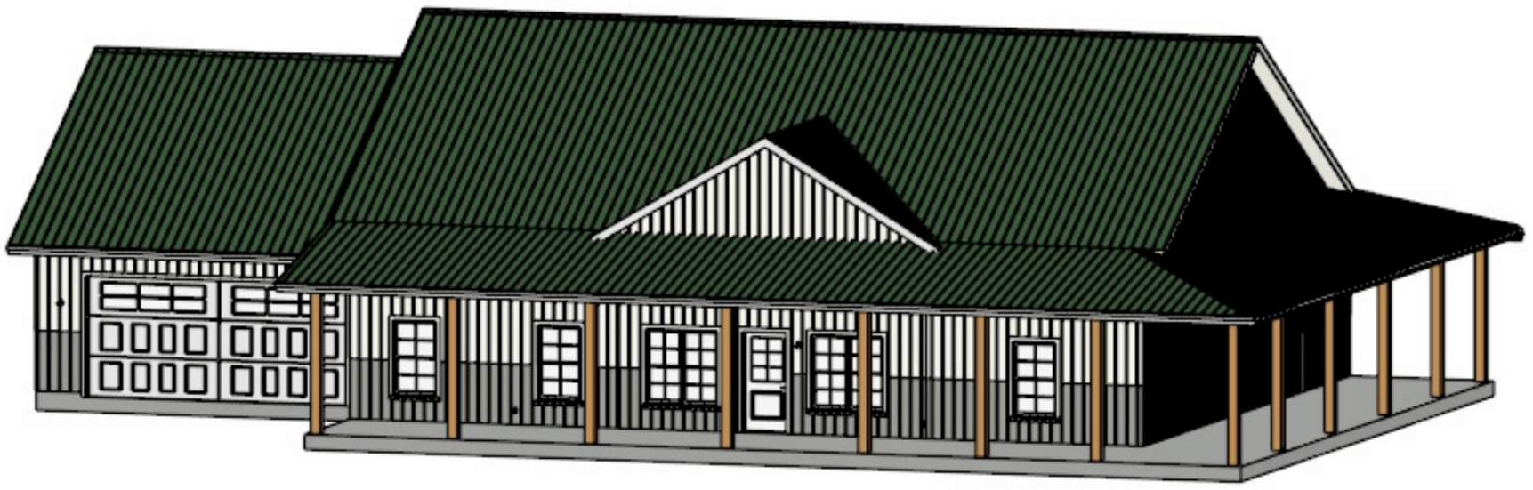 Spanning 90' x 55', this spacious Barndominium offers 2,110 sq. ft. of living space.