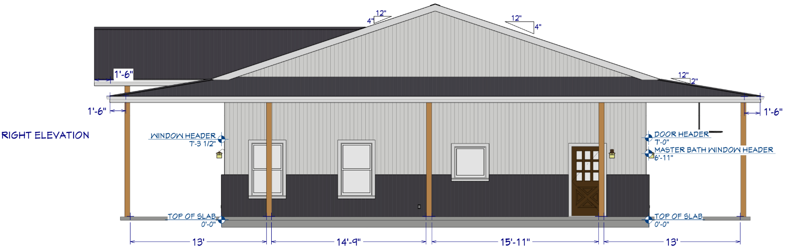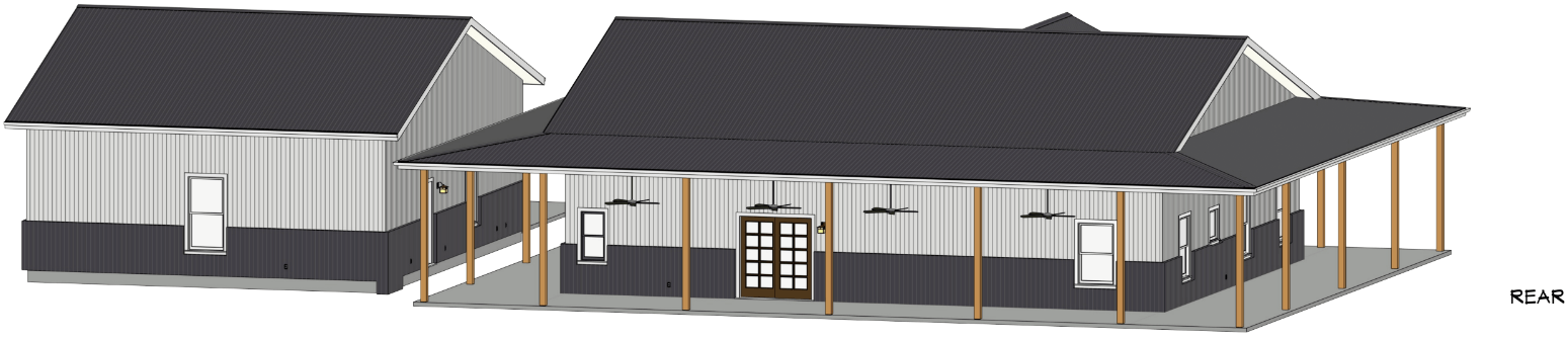 Introducing the Ledger Home, a spacious and inviting barndominium floor plan designed for comfort and functionality.