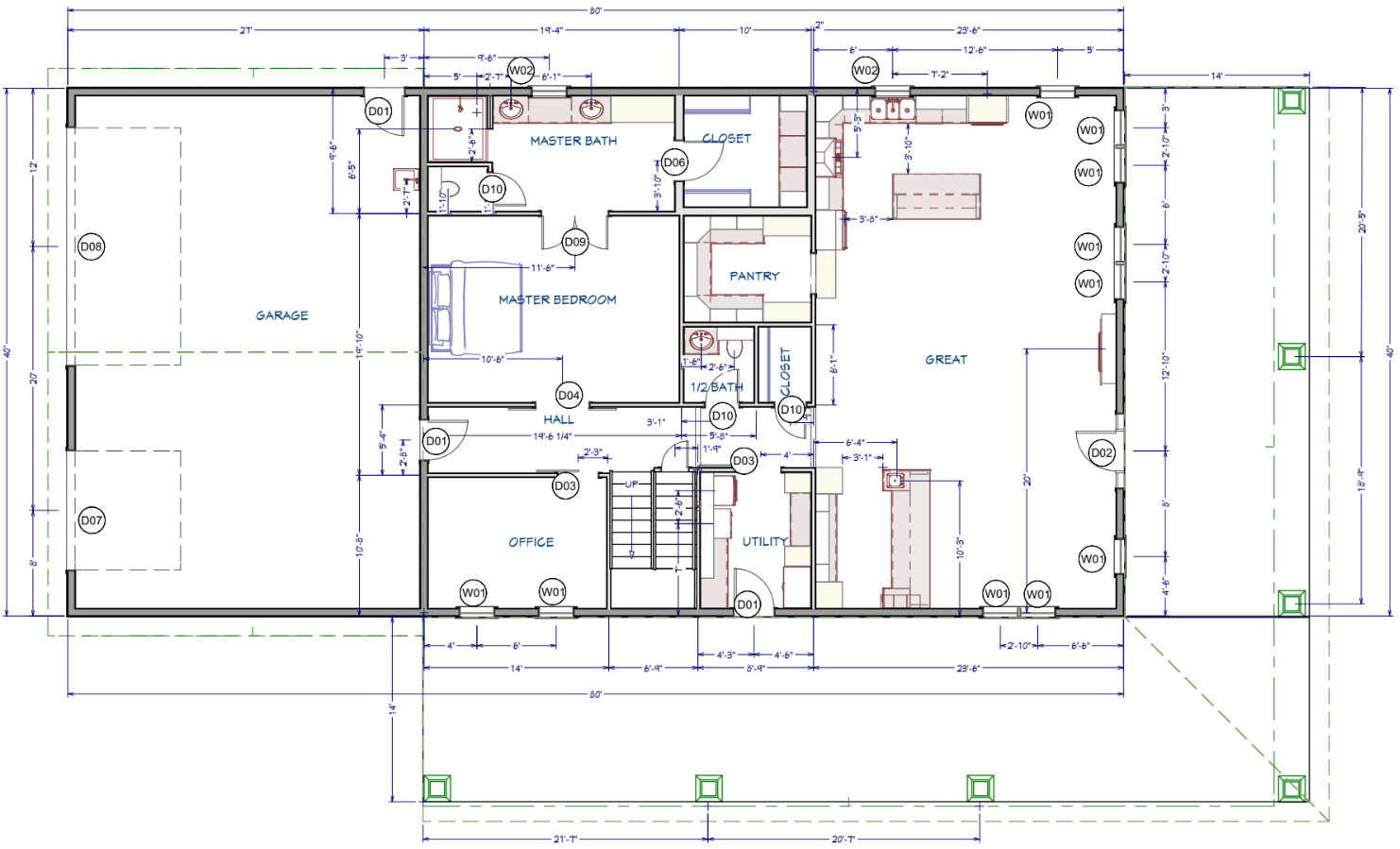 Introducing our charming Smallwood Home barndominium floor plan, offering a spacious retreat nestled within a 75' x 40' footprint.