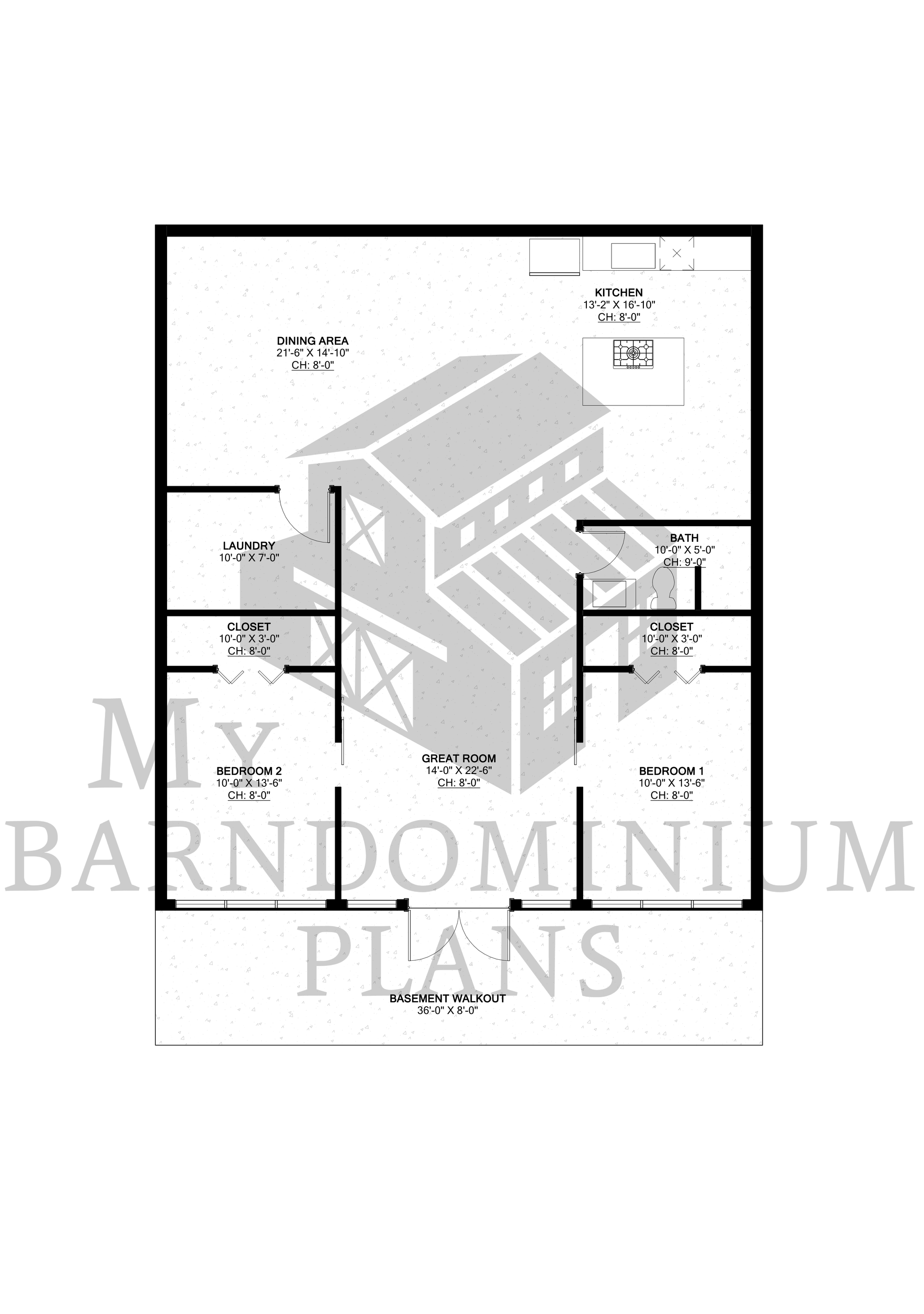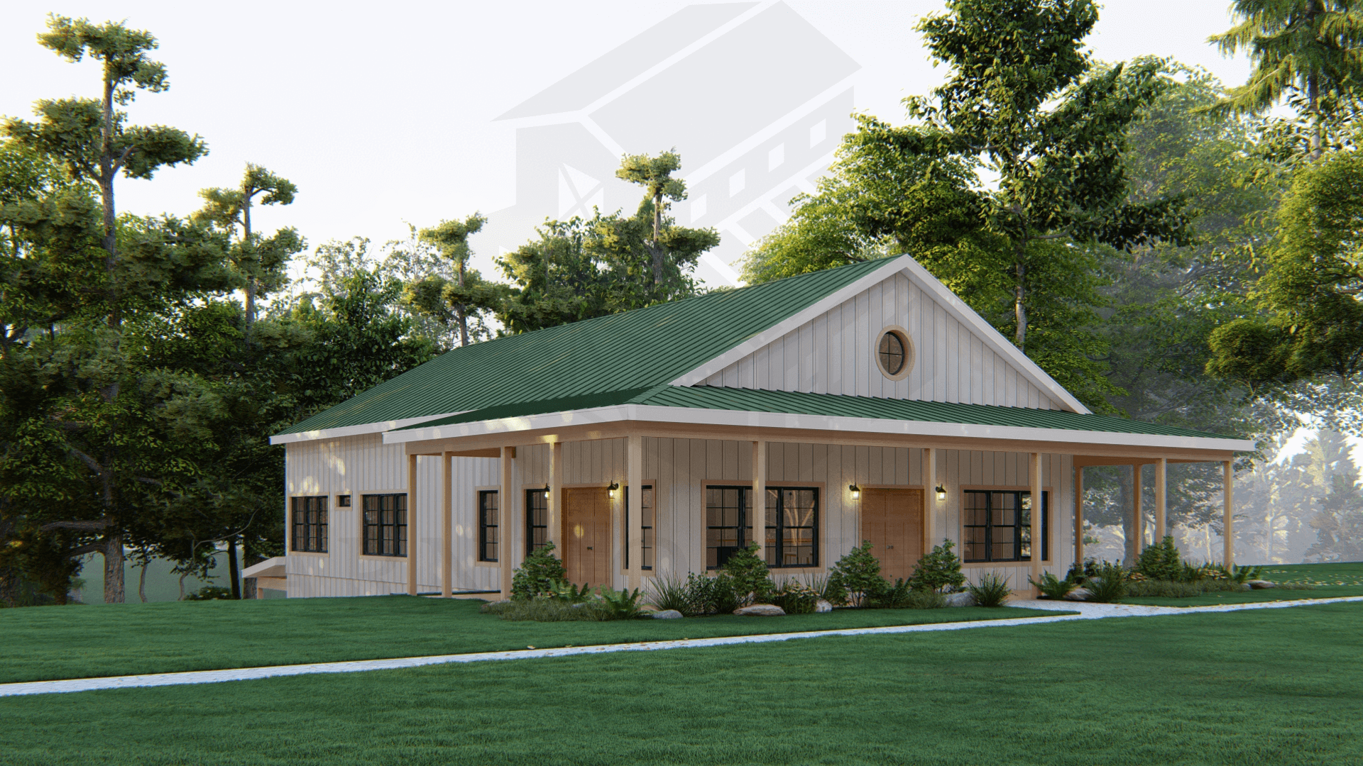 Welcome to The Babington Plan, a stunning Barndominium floor plan designed for spacious living.