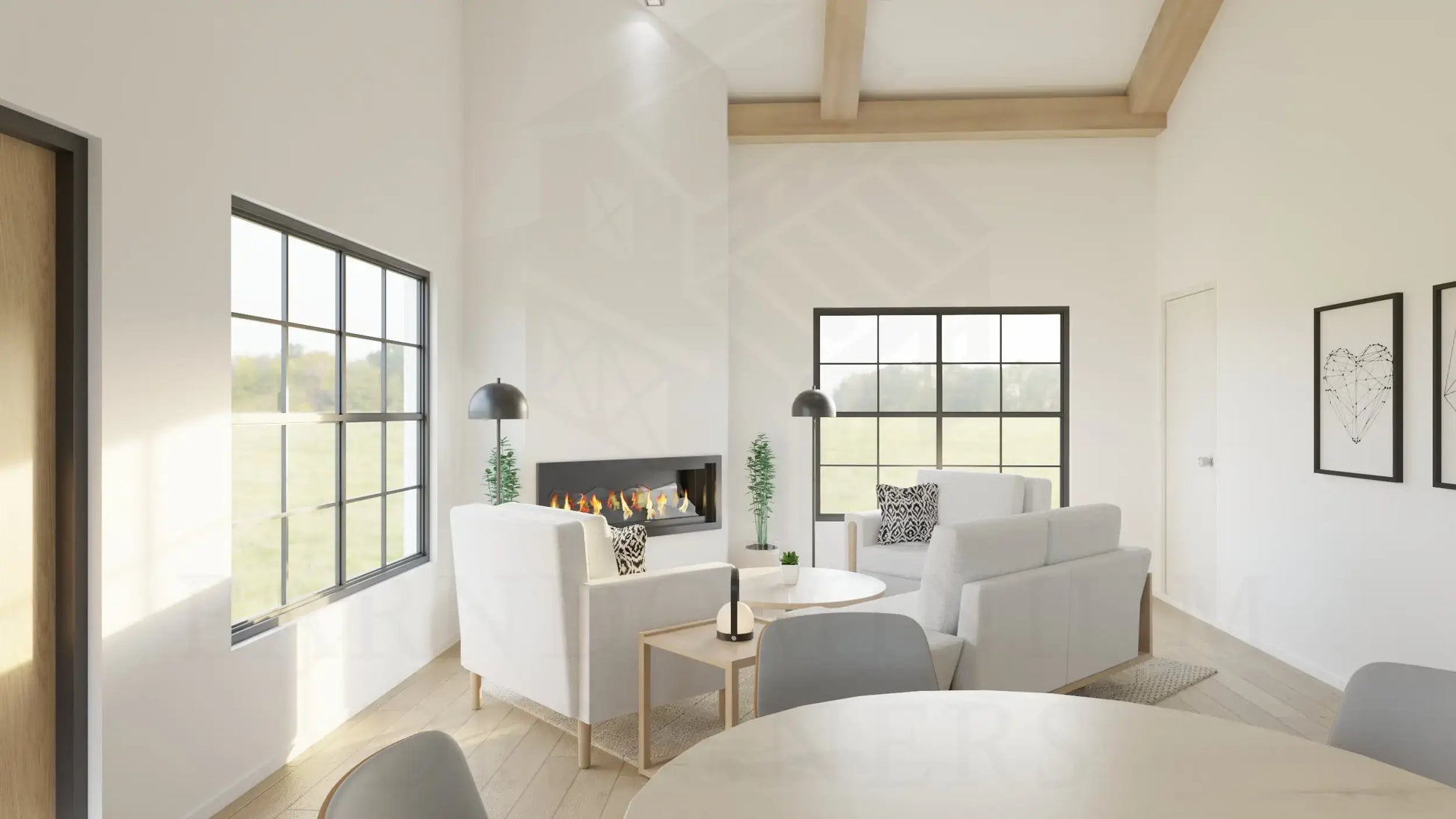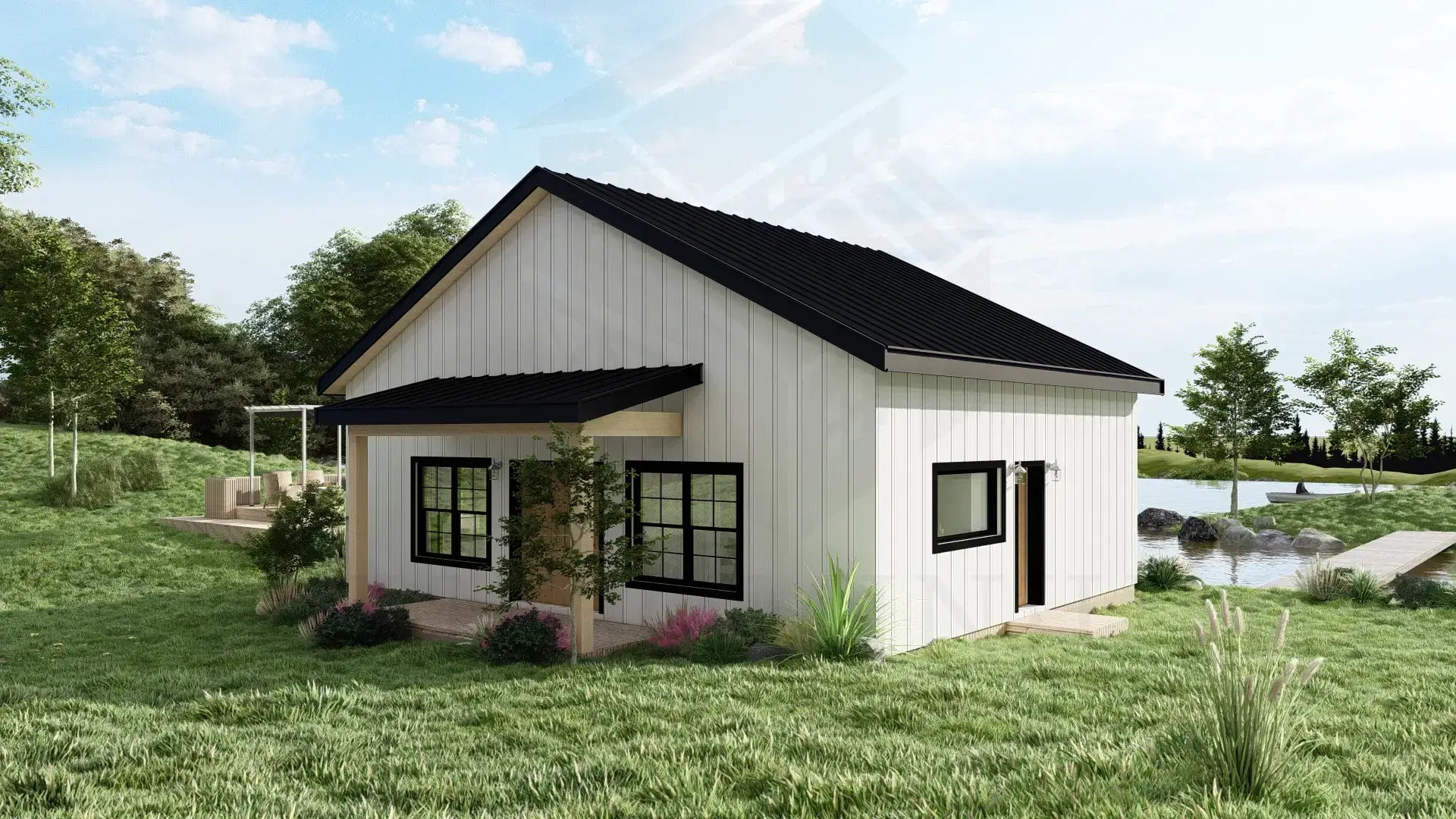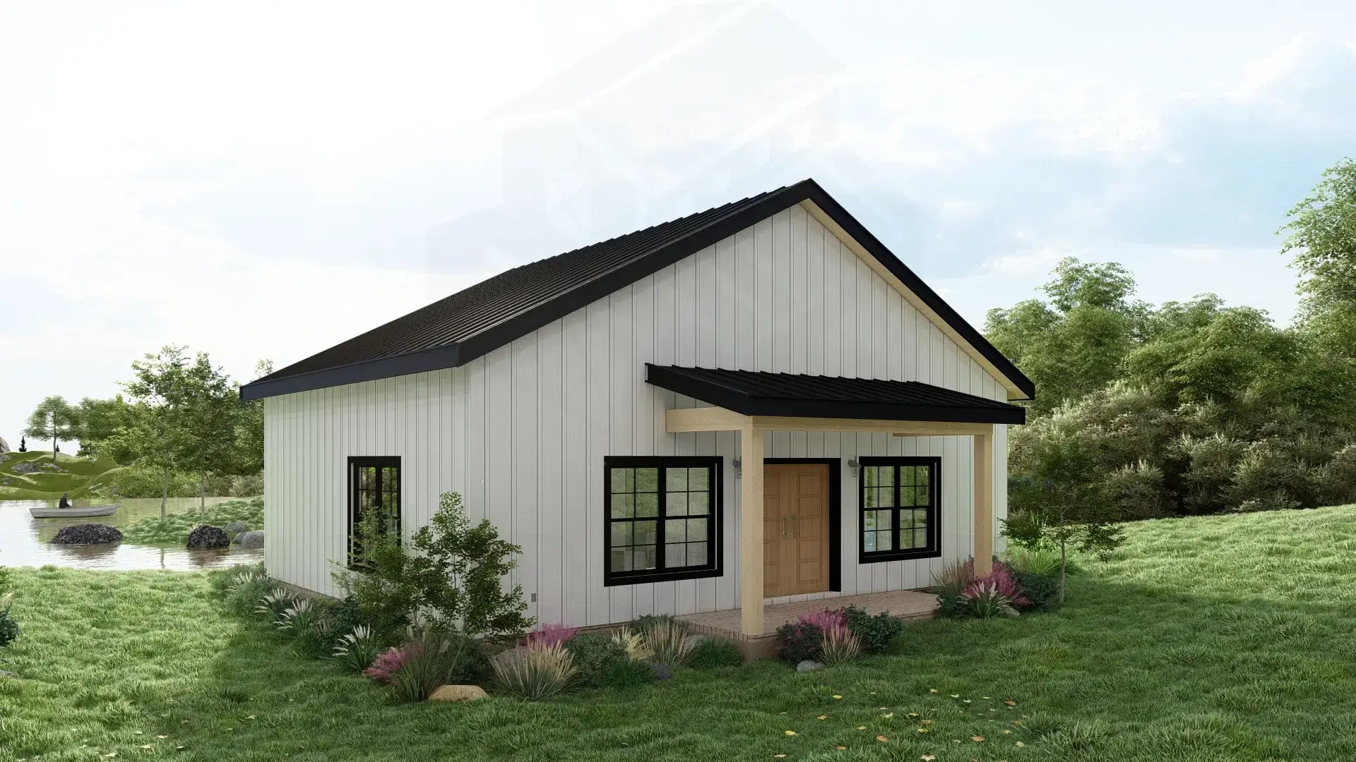 Introducing The Byron Plan, a charming Barndominium floor plan perfect for those seeking a cozy and efficient living space.