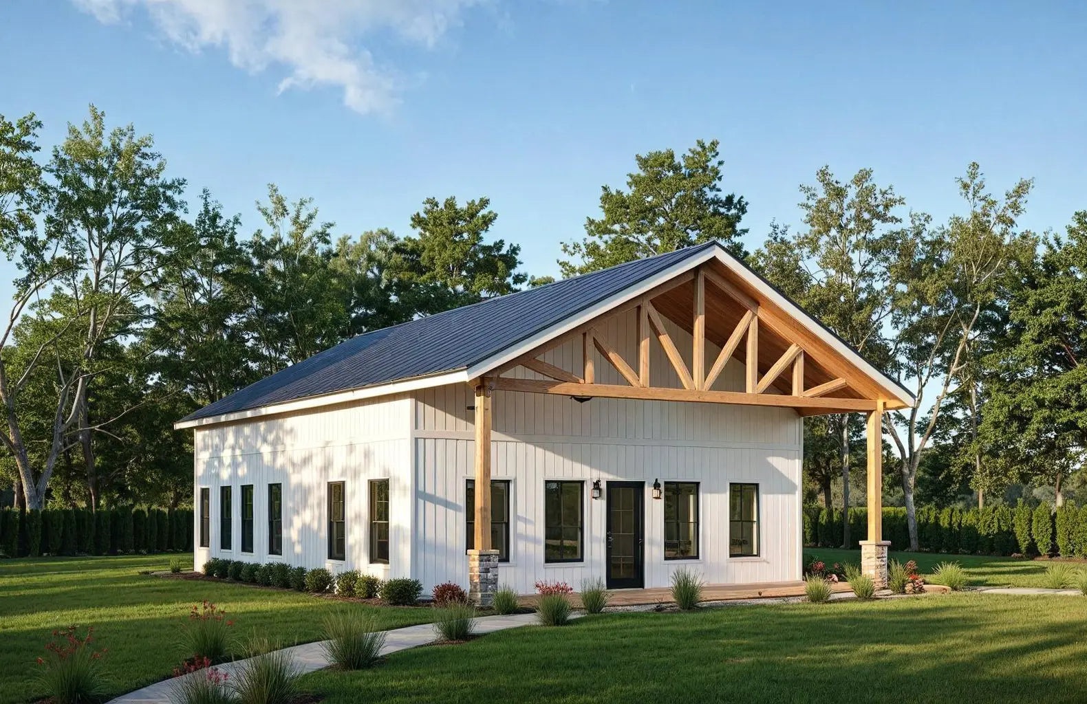 Introducing the Calmore Plan: a blend of modern comfort and rustic charm within its 30' x 40' dimensions, offering 1,440 sq. ft. of inviting space.