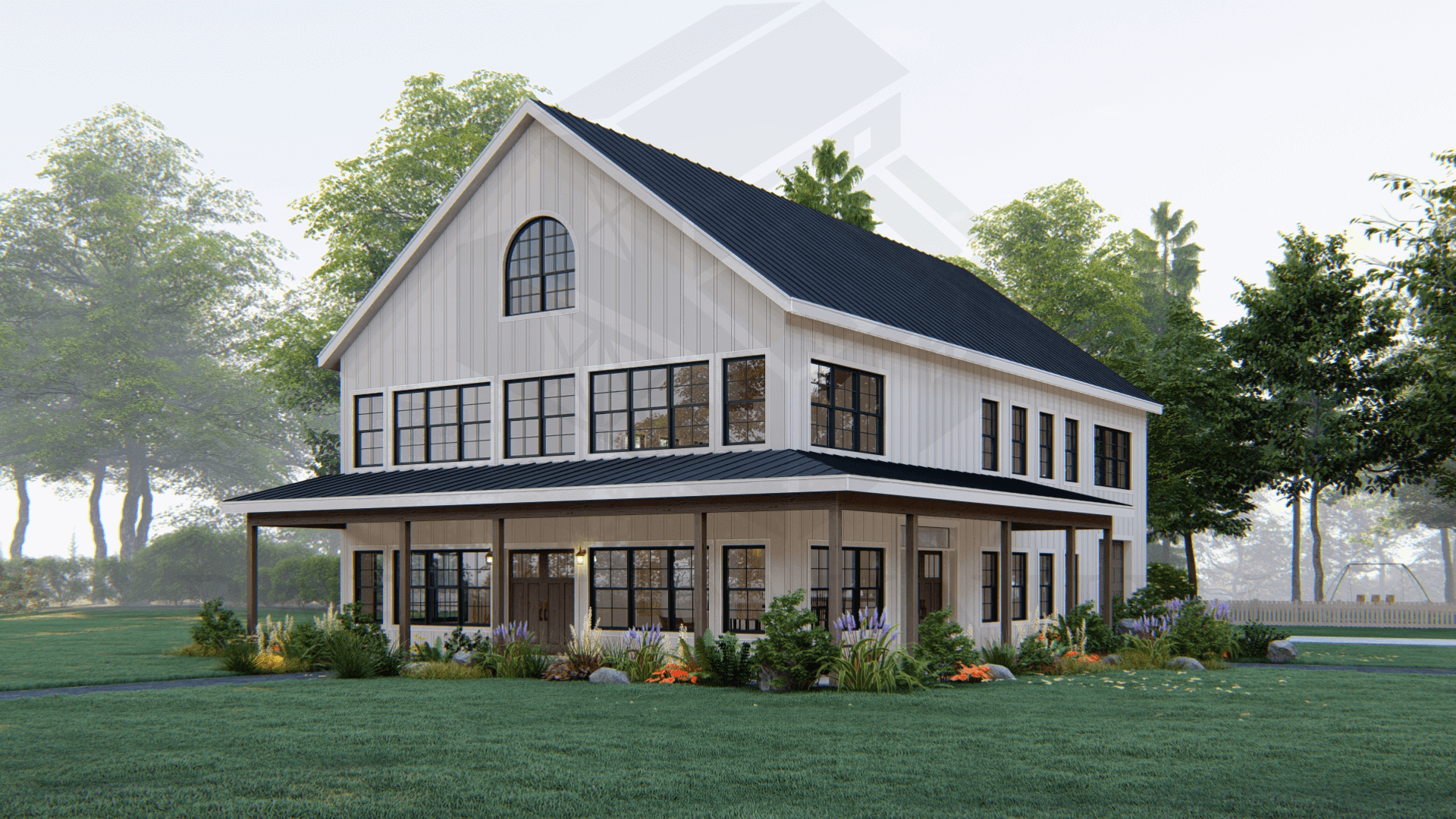 Welcome to The Clements Plan, a captivating Barndominium floor plan designed for modern living.