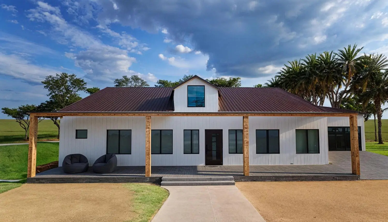 This barndominium features four spacious bedrooms and three bathrooms, providing plenty of room for family and guests.