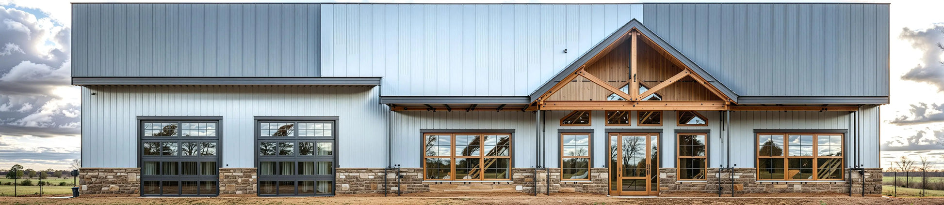 This barndominium features three bedrooms, each with its own closet, and two bathrooms for everyday convenience.