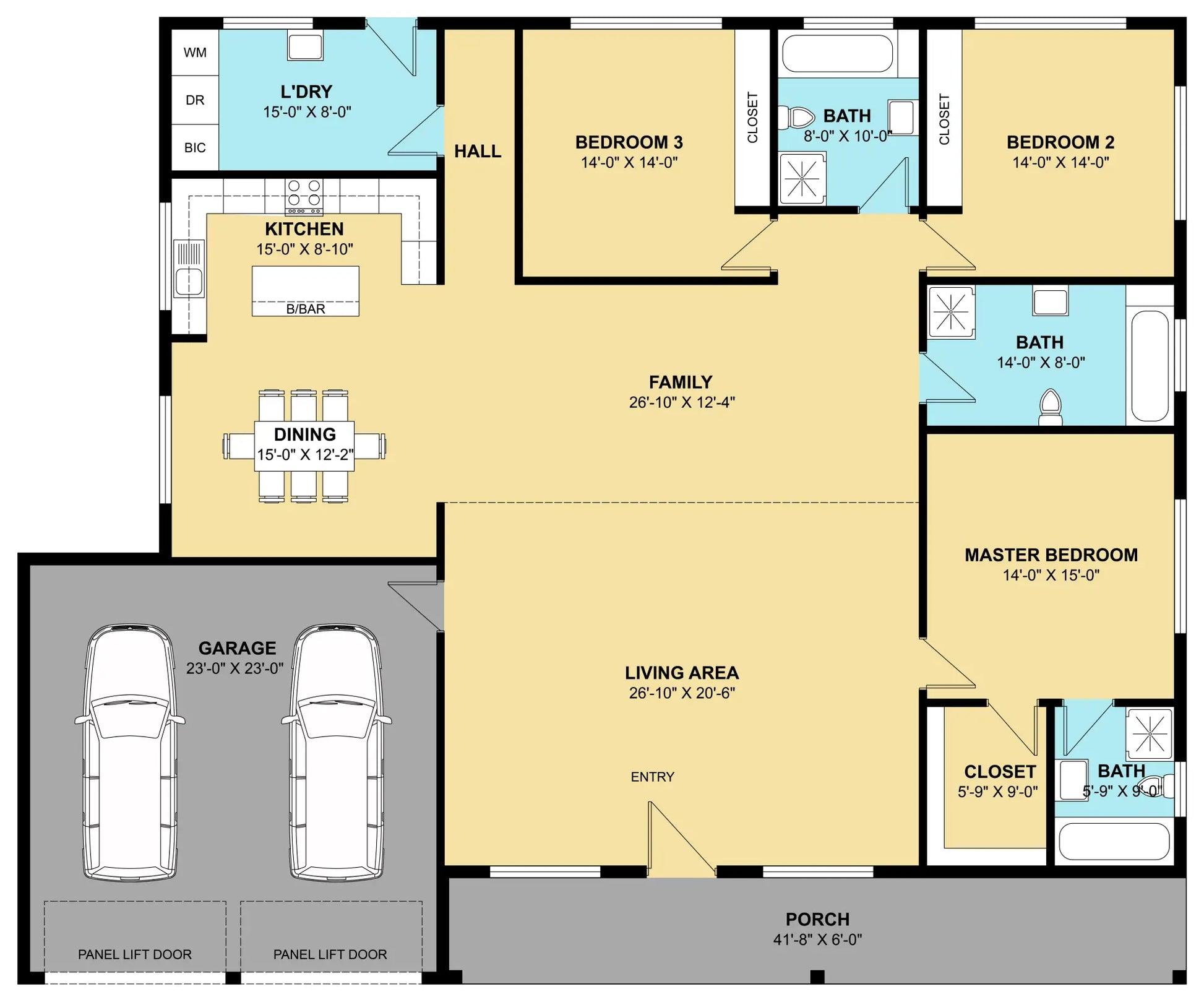 With its 2-car attached garage and practical layout, The Fairview Plan is a versatile choice for families seeking both style and convenience.