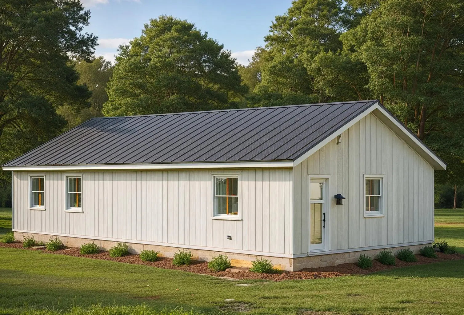 This barndominium features three bedrooms and two bathrooms, making it an ideal choice for families or those seeking a cozy yet functional home.