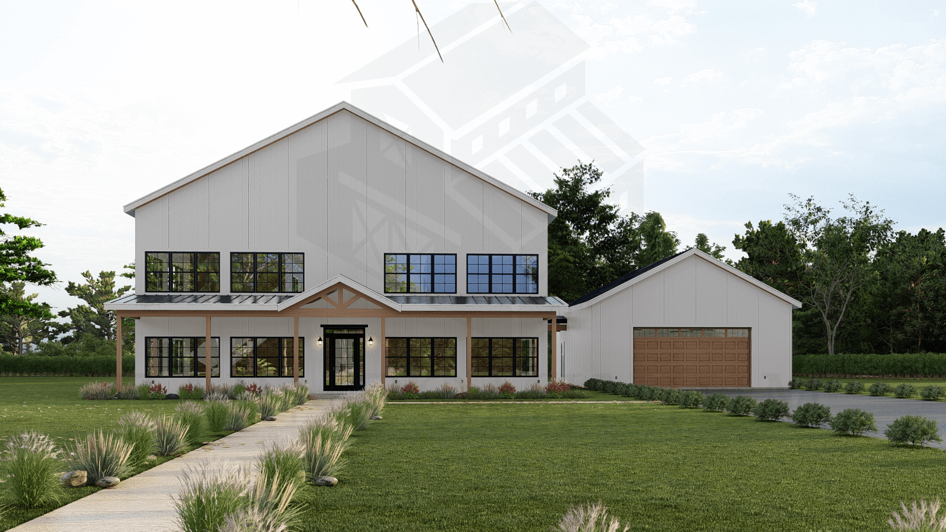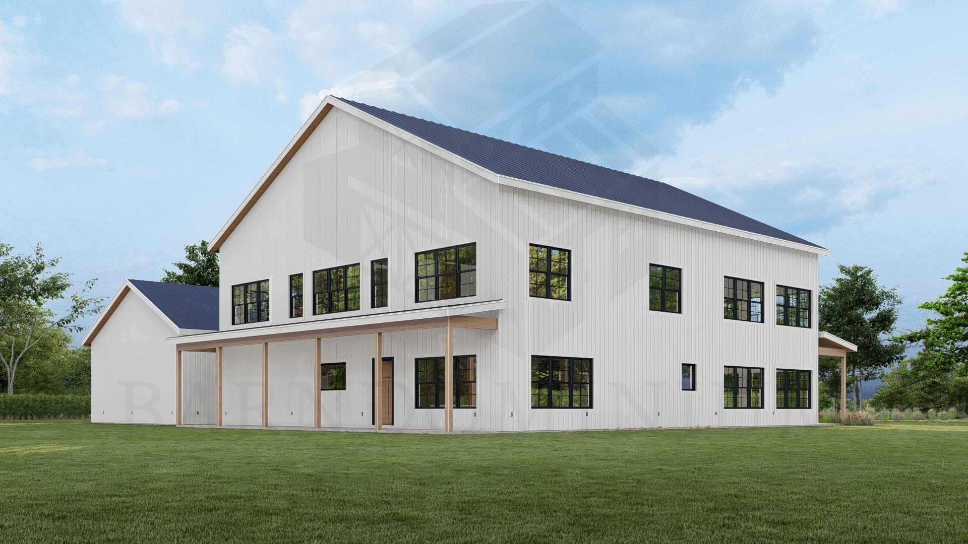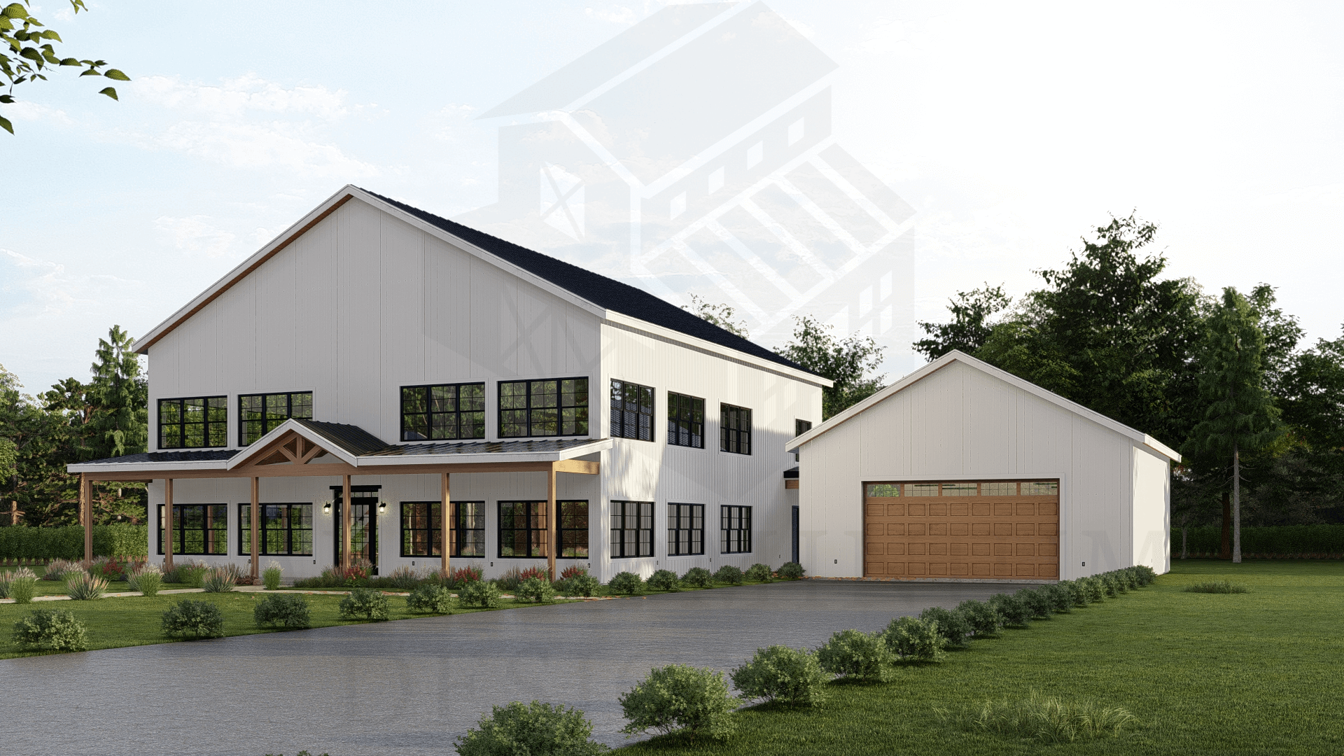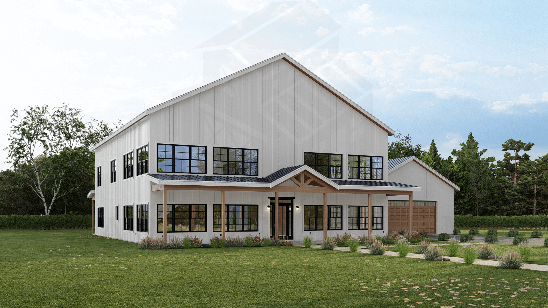 Introducing The Goldsmere Plan, a captivating Barndominium floor plan designed for modern living.