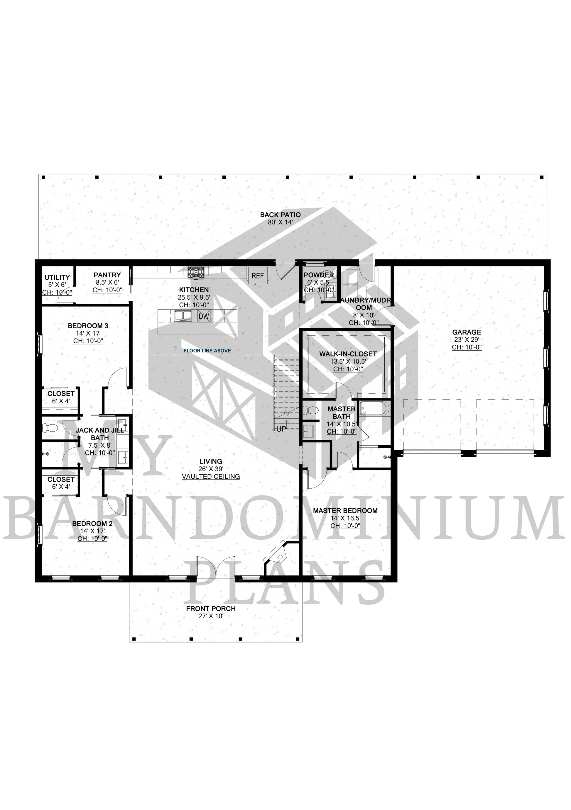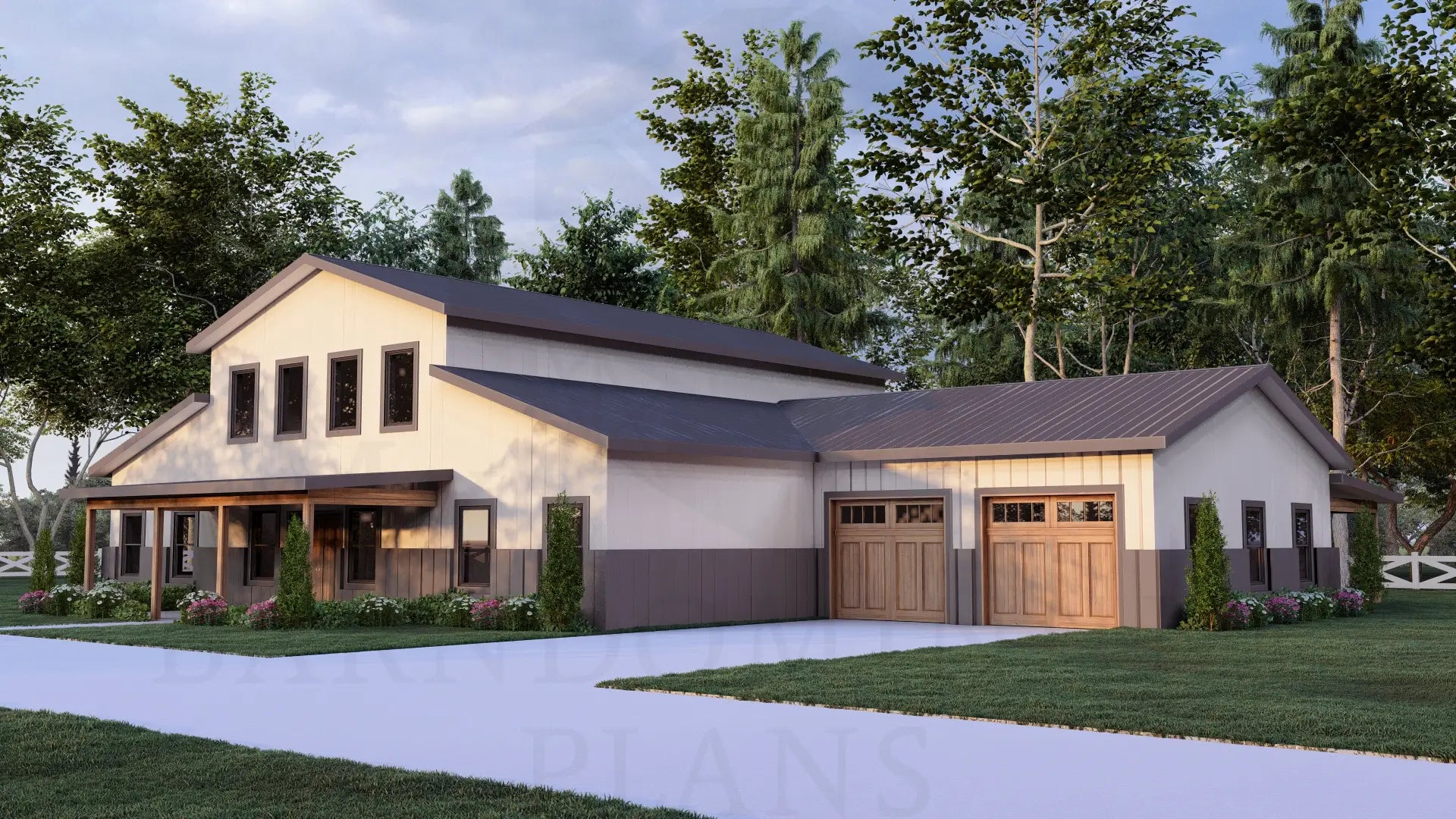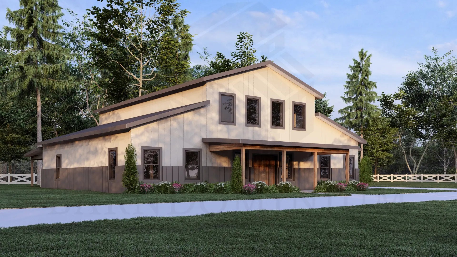 The Gubbins Plan is a spacious 5,265 sq. ft. two-story barndominium that offers a perfect balance of comfort and functionality.