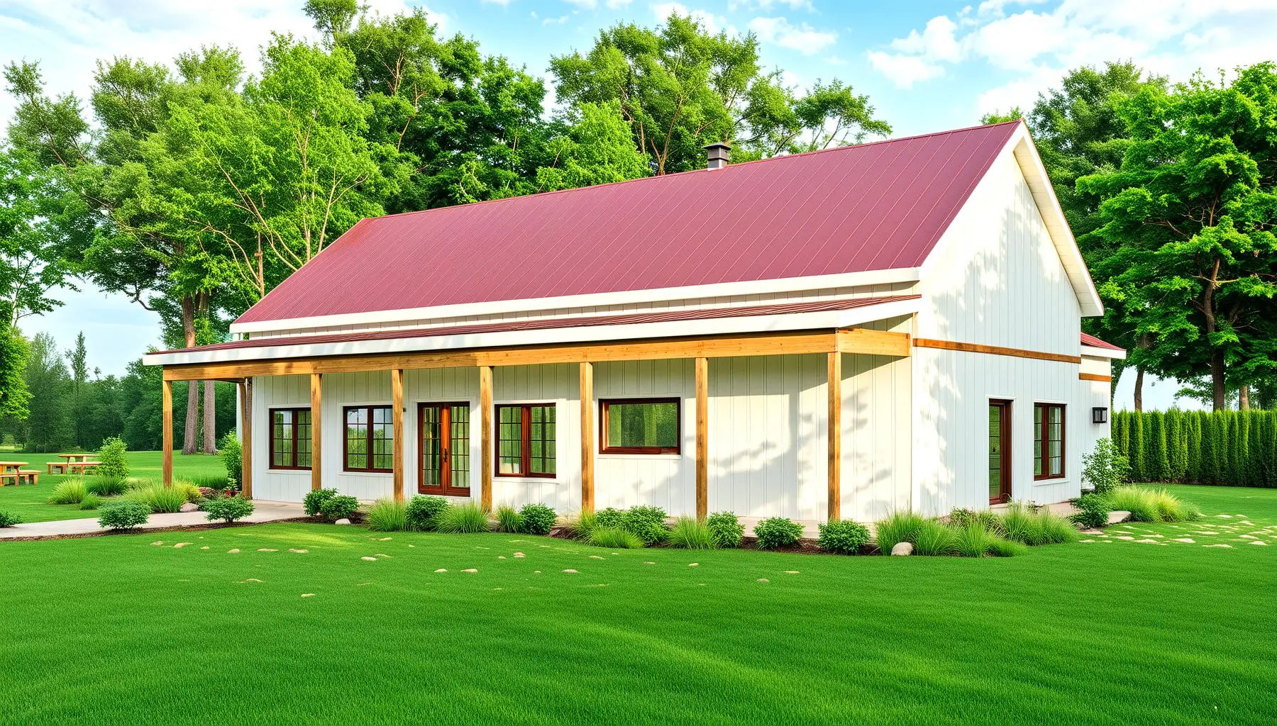 Accentuating its charm is a wide front porch crowned with a protective roof, inviting you to unwind and relish the tranquility of the surroundings.