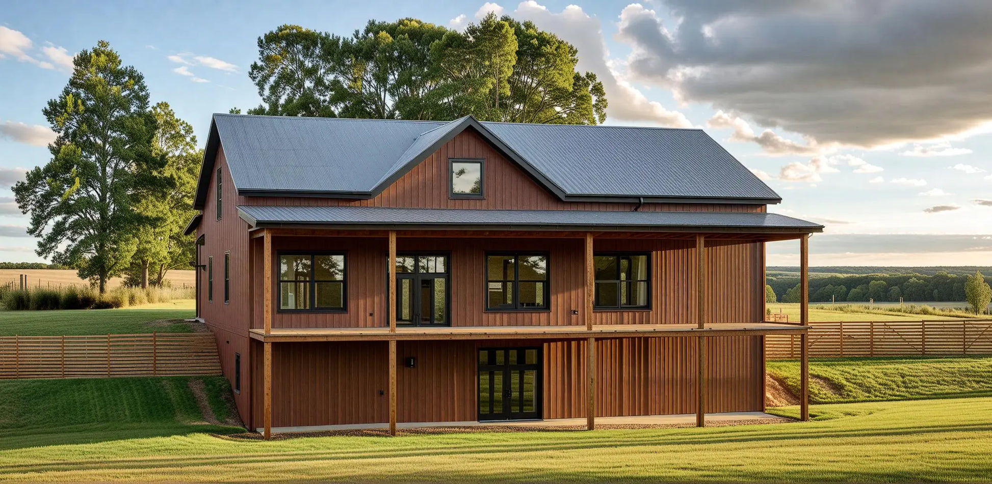 Featuring a walkout basement, this barndominium provides versatile living with four bedrooms and 3.5 bathrooms, perfect for families or hosting guests.