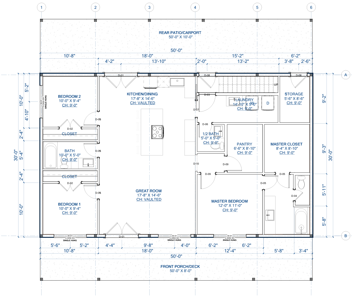 The Lynton Plan offers 2,968 sq. ft. of heated living space within a 30' x 50' footprint, totaling 3,868 sq. ft. overall.