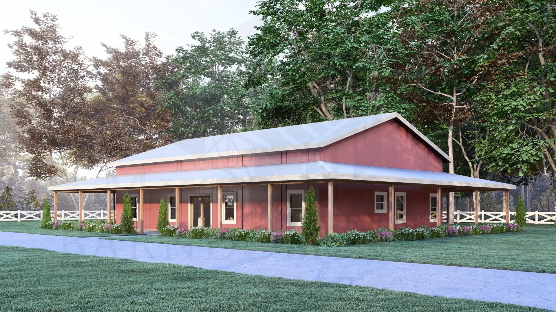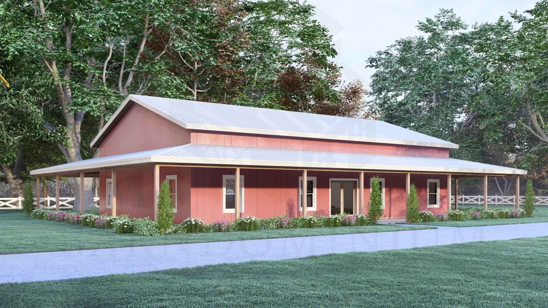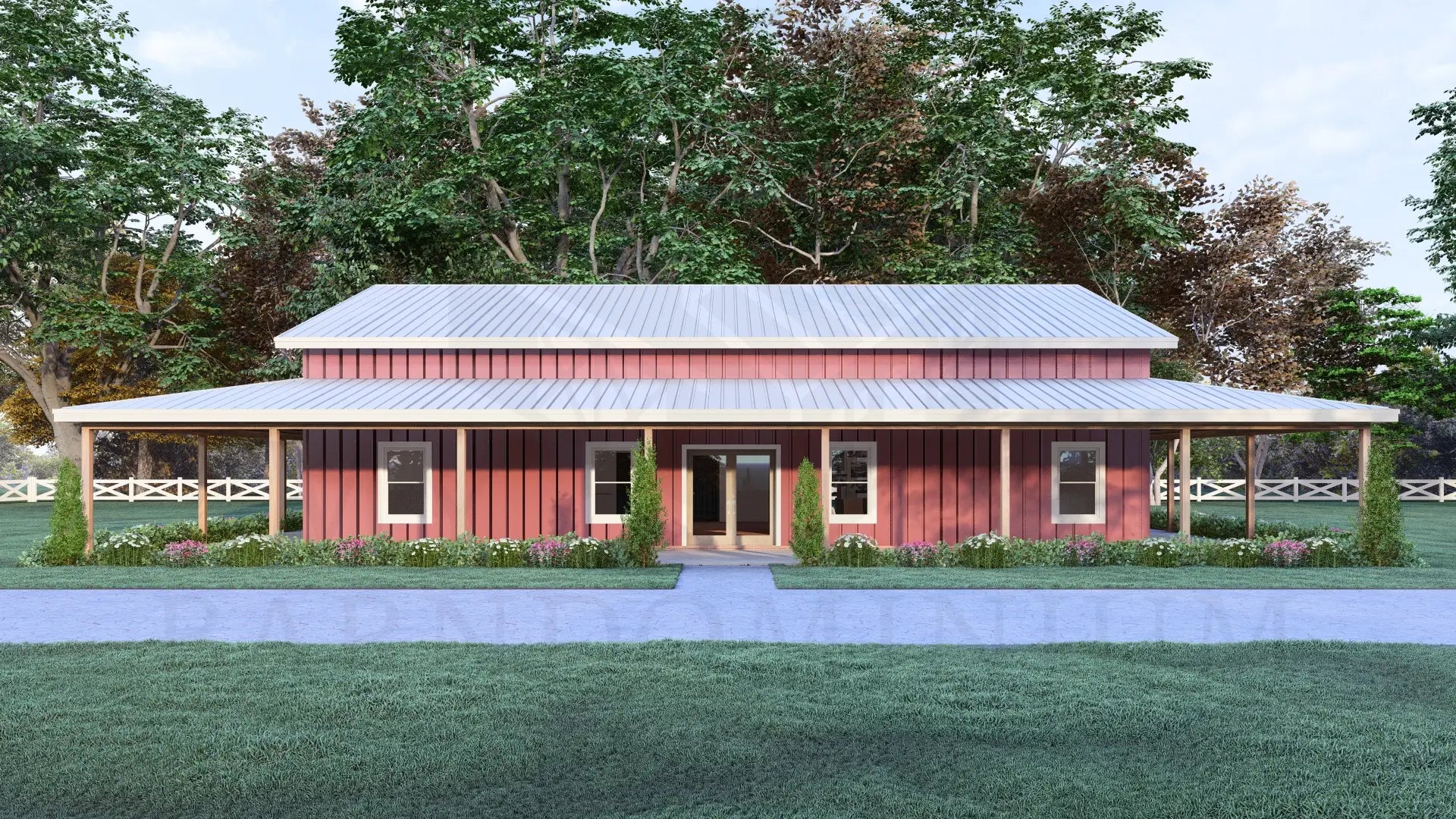 The Plumpton Plan is a charming 2,400 sq. ft. barndominium designed for comfort and functionality.