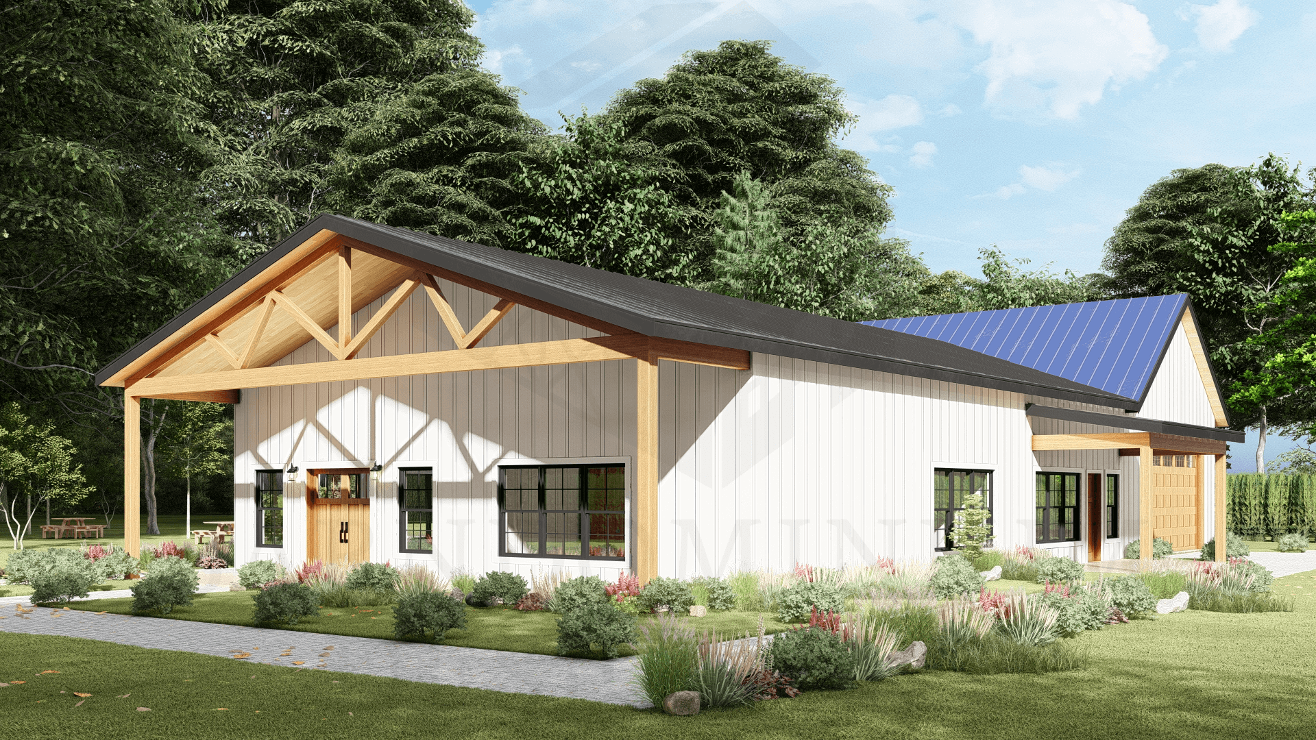Welcome to The Purbeck Plan, a spectacular Barndominium floor plan designed for spacious living and functionality.