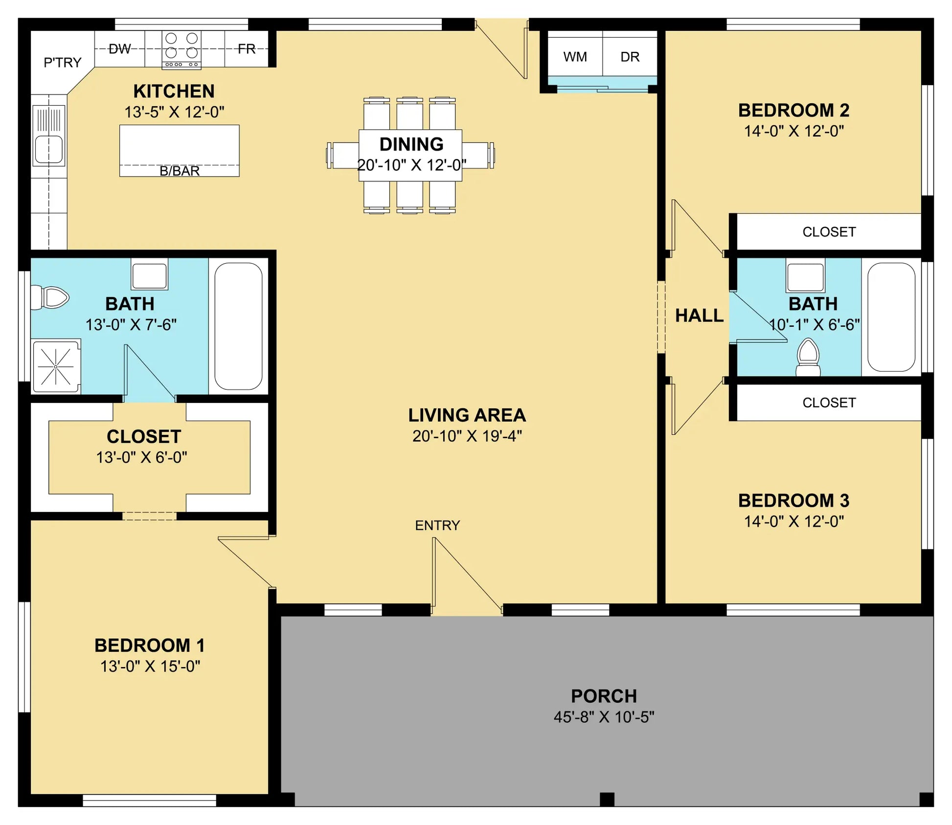 The Wambrook Plan offers 2,154 sq. ft. of comfortable living space in a 50' x 43' layout.