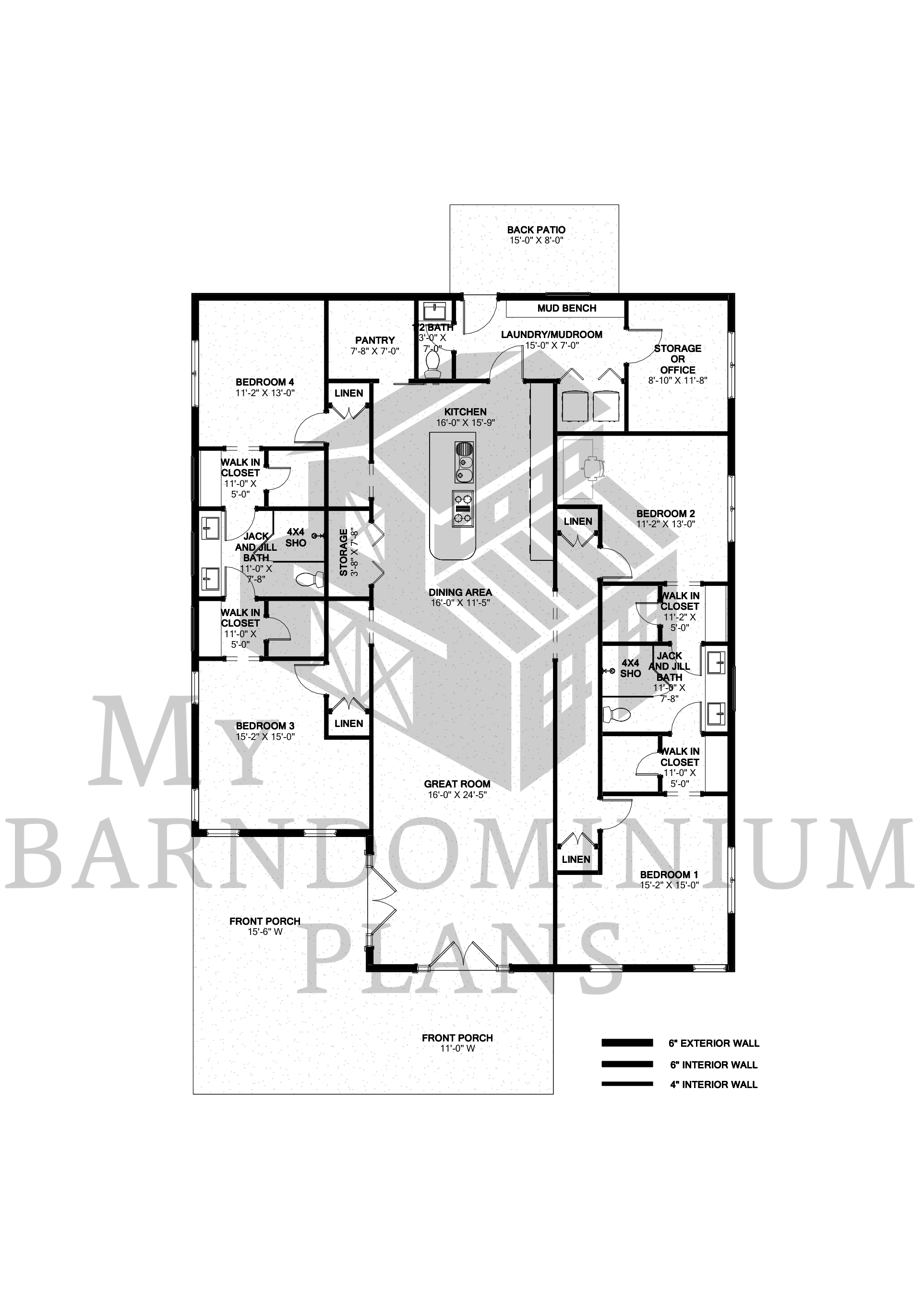 Welcome to The Westbrook Plan - an embodiment of spacious luxury spanning 48' x 60'. This modern barndominium boasts a total area of 3,352 sq. ft.