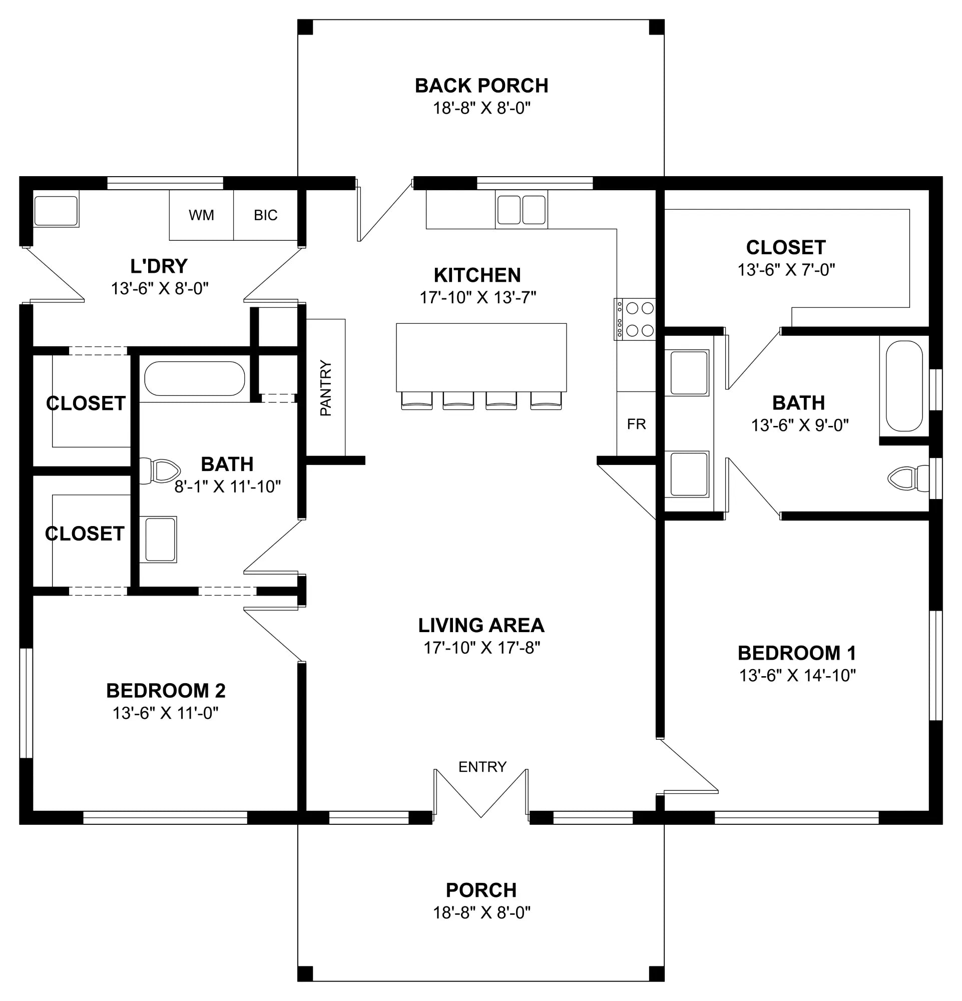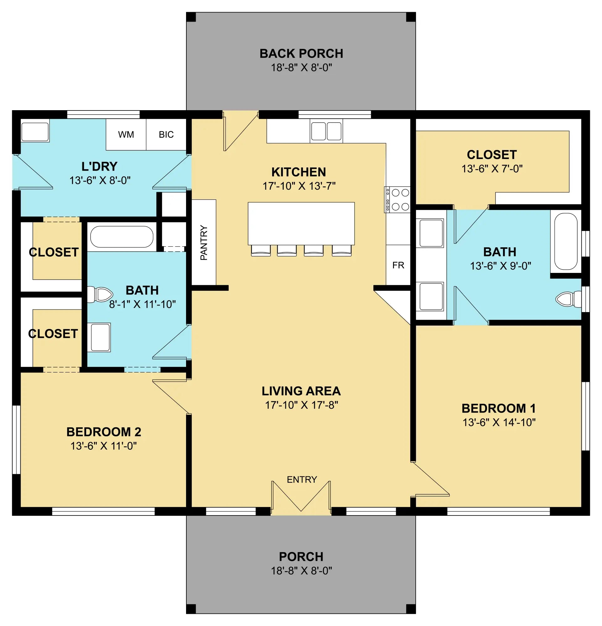A dedicated laundry room enhances everyday convenience, while the front and back porches provide relaxing outdoor spaces.