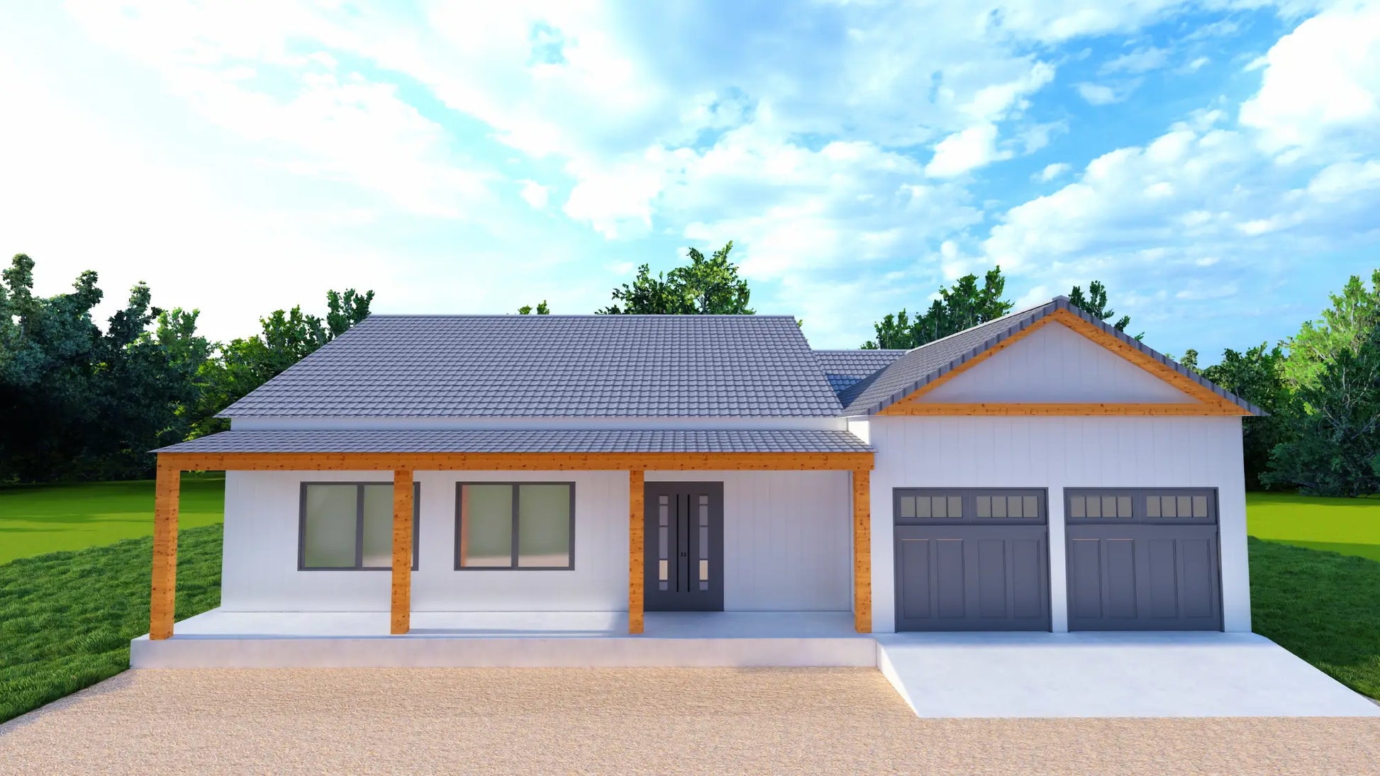 With a 2-car attached garage and a welcoming front porch, The Zanwick Plan blends practicality with modern barndominium style.
